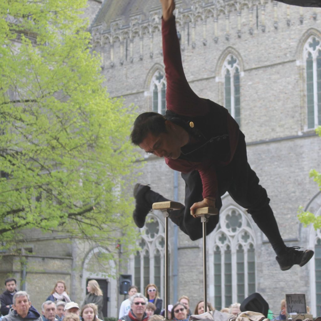 As a busker Hayatonnu focuses on creating harmony between dance and handbalancing.